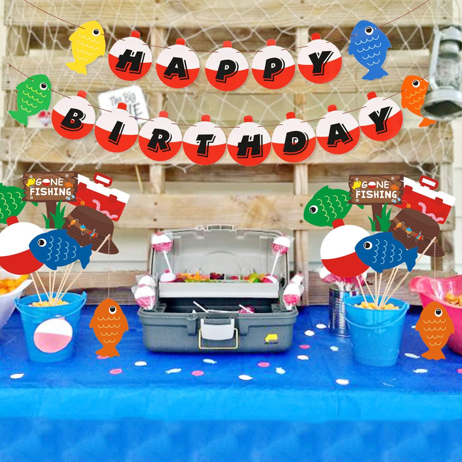 Gone fishing theme party decorations. Happy retirement party supplies feature an elegant black and gold design that will look great at any venue. This awesome gone fishing birthday party was submitted by lauren haddox of lauren haddox designs. Fish baby shower or birthday party bunting banners size: In stock at selected store set store location temporarily unavailable at westgate market out of stock at westgate market edit store.